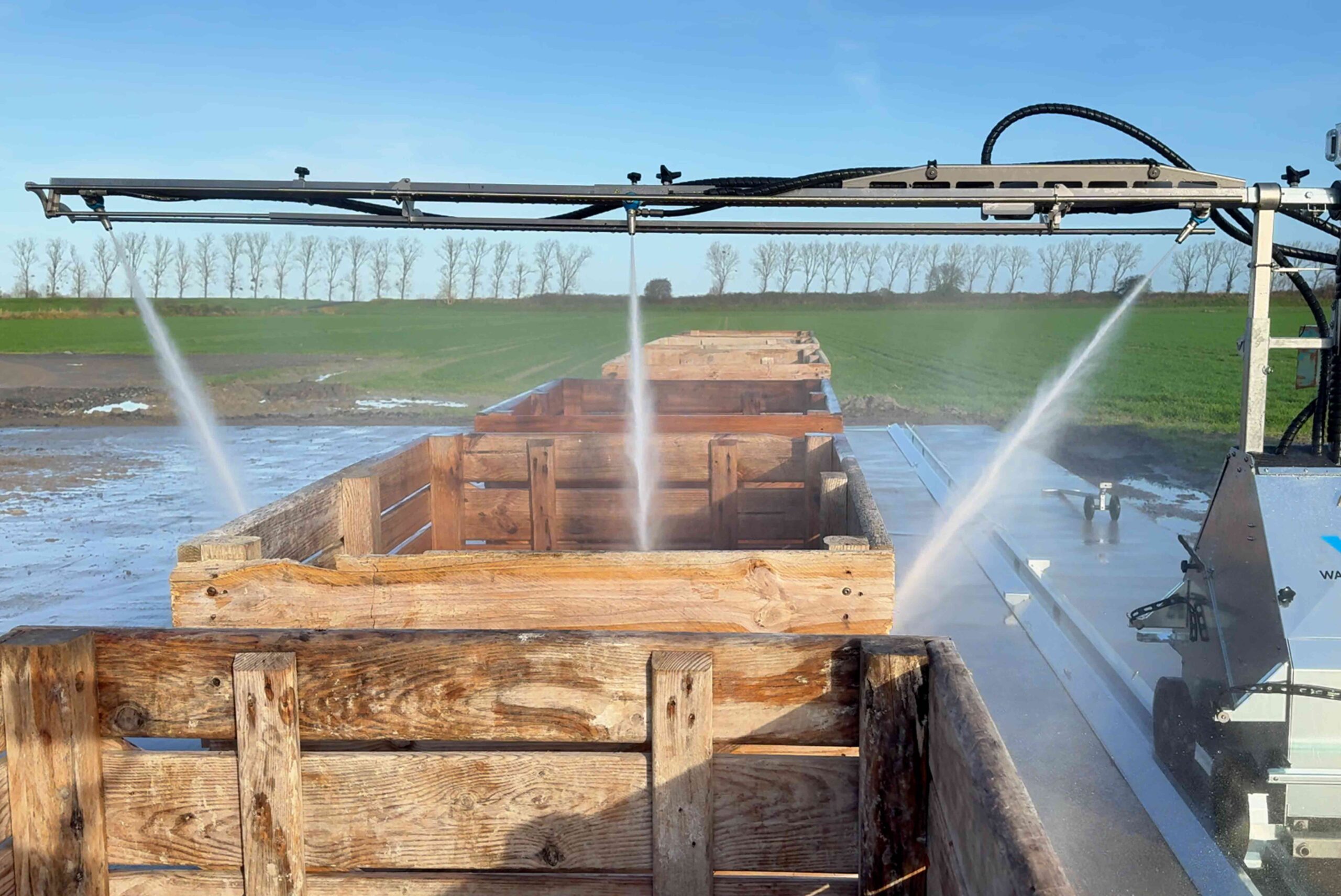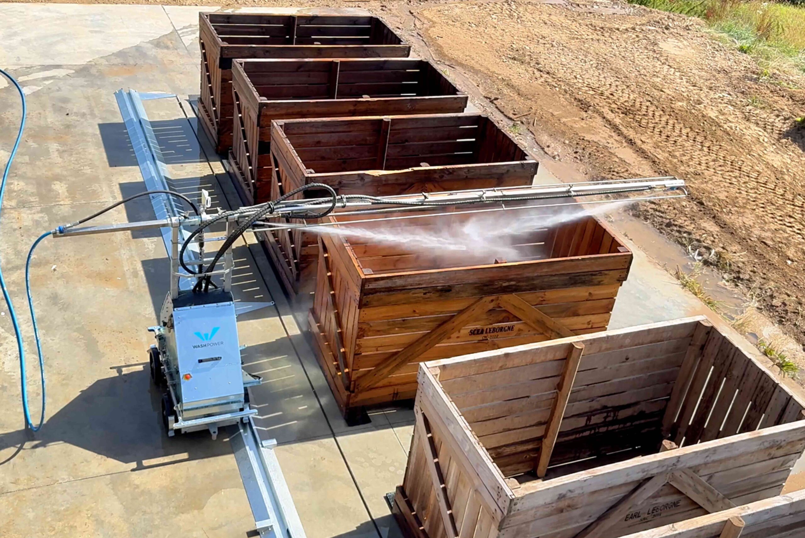 Le ProCleaner C100 est équipé d’un bras horizontal muni de 3 buses puissantes (une à chaque extrémité et une au centre). Leur position peut être ajustée directement sur le bras, ce qui permet d’adapter le lavage aux différentes dimensions de palox. Grâce aux jets haute pression, chaque caisse est nettoyée en profondeur, de manière régulière et sans zones oubliées.
